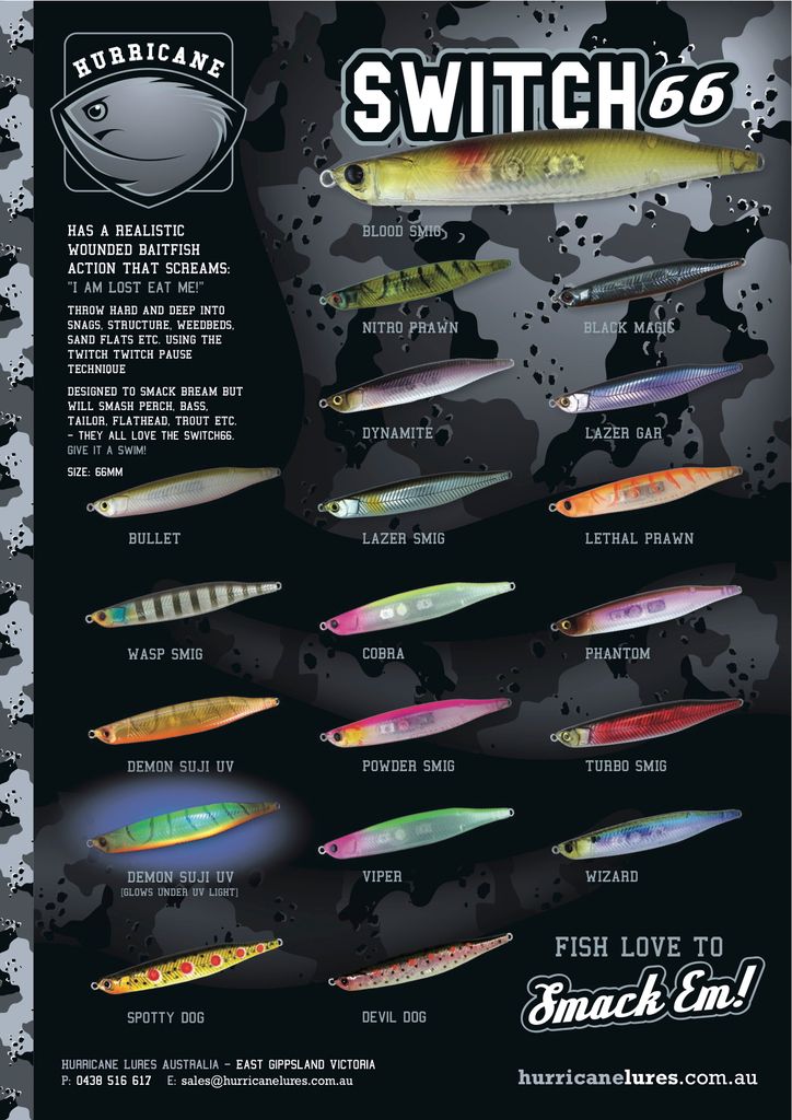 SWITCH 66 COLORS Please Select WIZARD DYNAMITE BULLET PHANTOM NITRO PRAWN LETHAL PRAWN POWDER SMIG VIPER COBRA LAZER GAR LAZER SMIG TURBO SMIG DEMON SUJI WASP SMIG BLACK MAGIC SPOTTY DOG DEVIL DOG